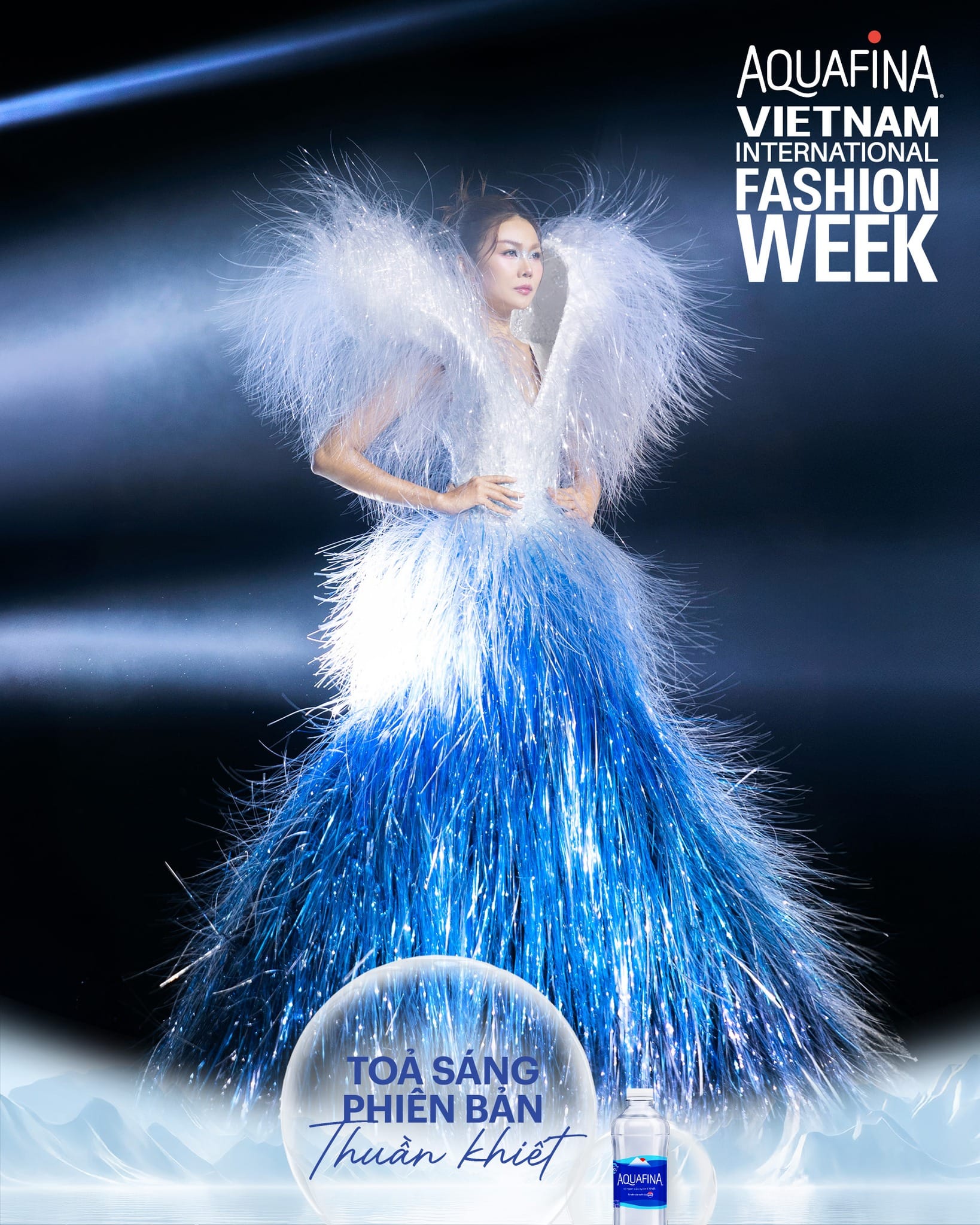 Lê Thanh Hòa: “The Light of Water” khai màn chương trình bằng cảm hứng từ đại dương – sắc xanh tươi mát, chất liệu mỏng tanh, sequin nhẹ như sóng vỗ biển.